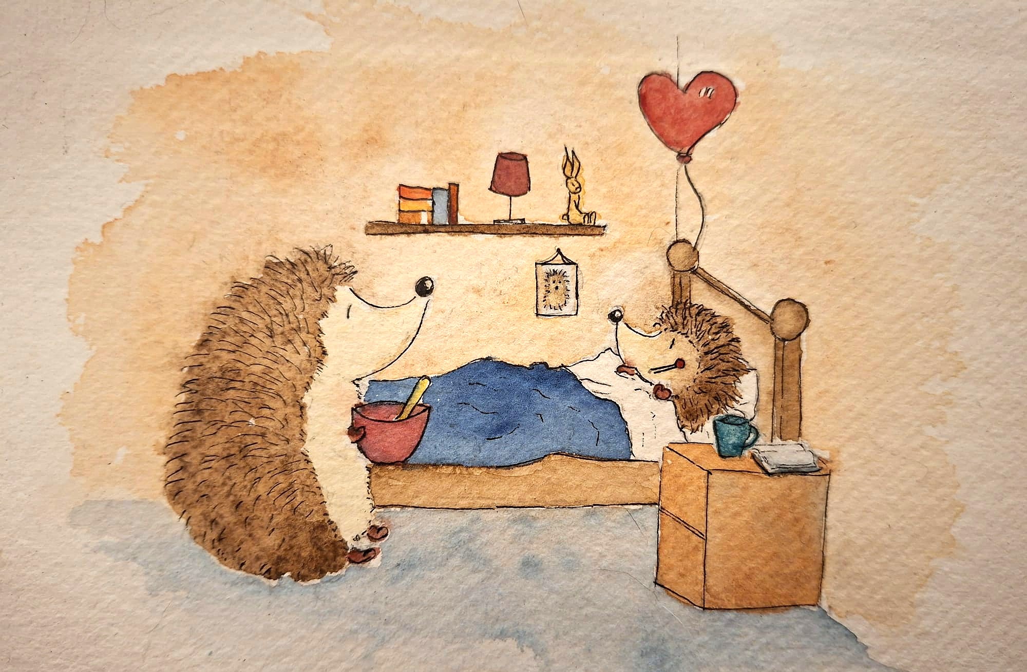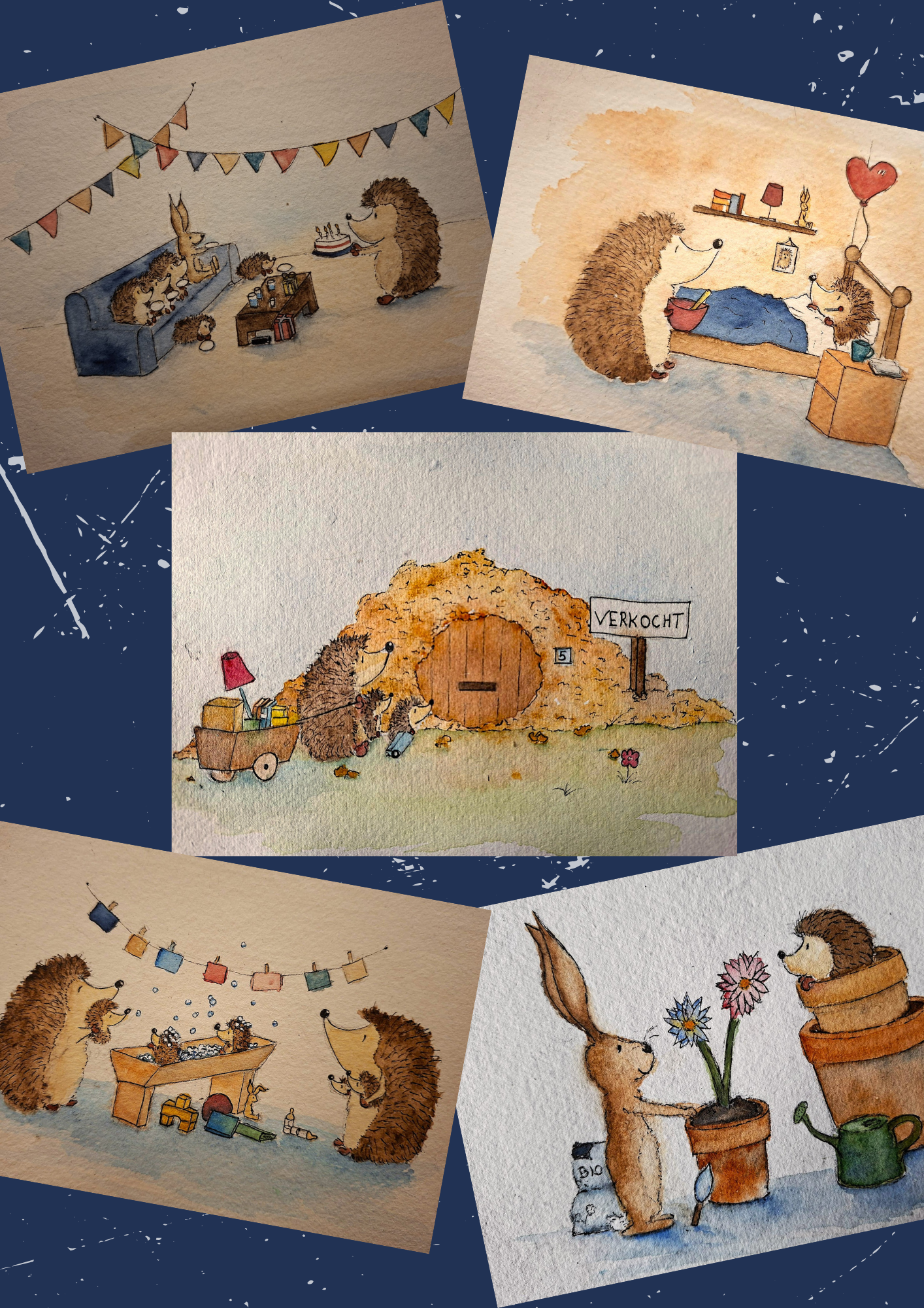 Deze unieke wenskaarten zijn zelfgeschilderd door de oprichter van Stichting Snorhaar.