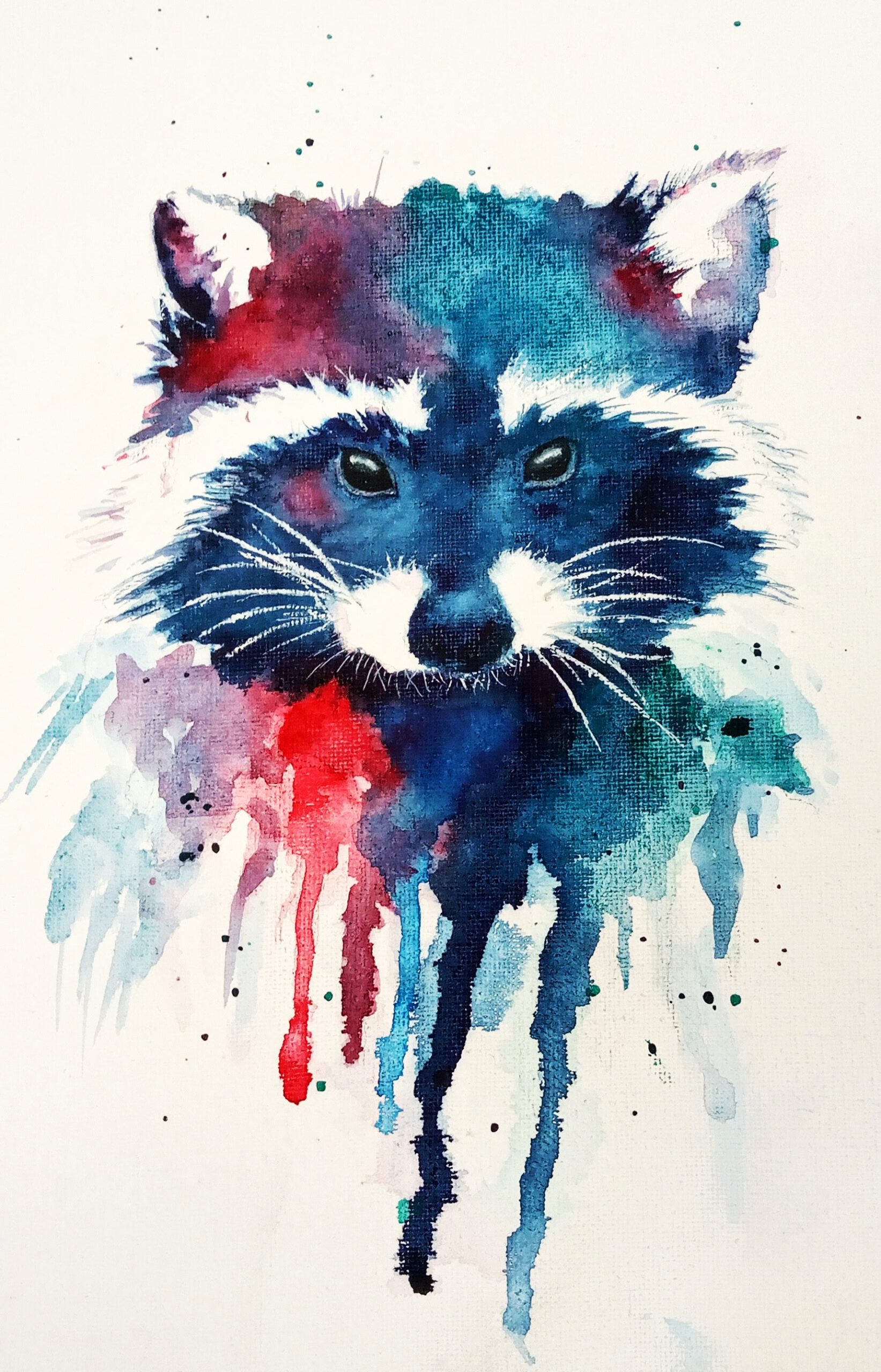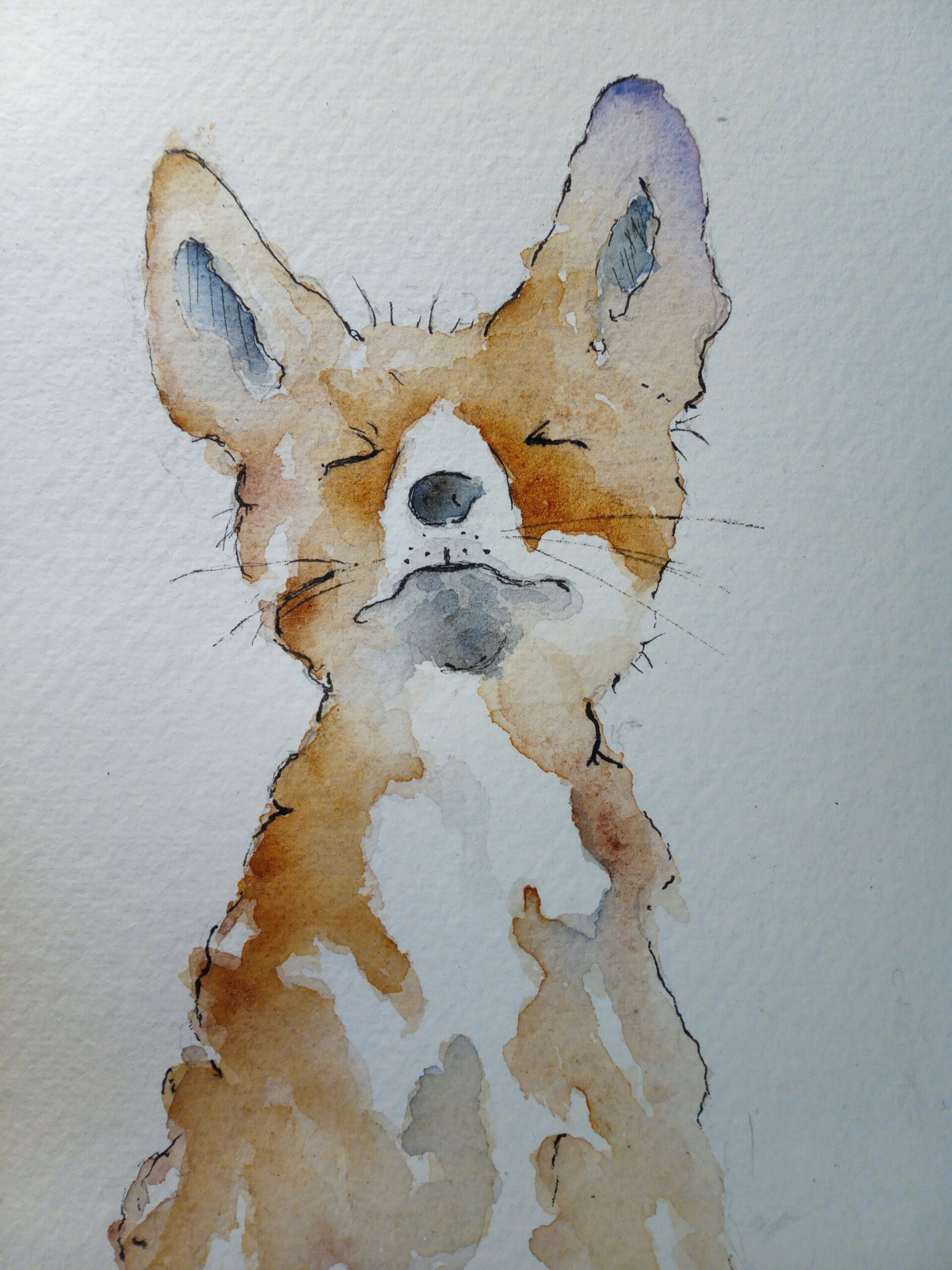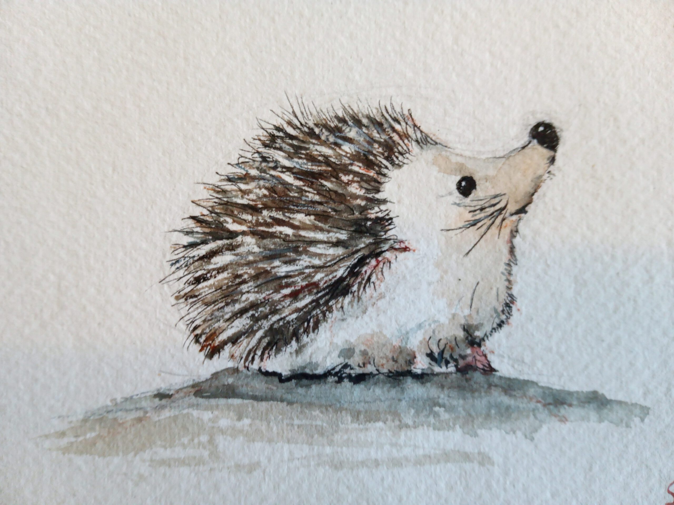 5 zelfgeschilderde kaarten. De afbeeldingen zijn van een haas, egel, konijn, wasbeer en vos.